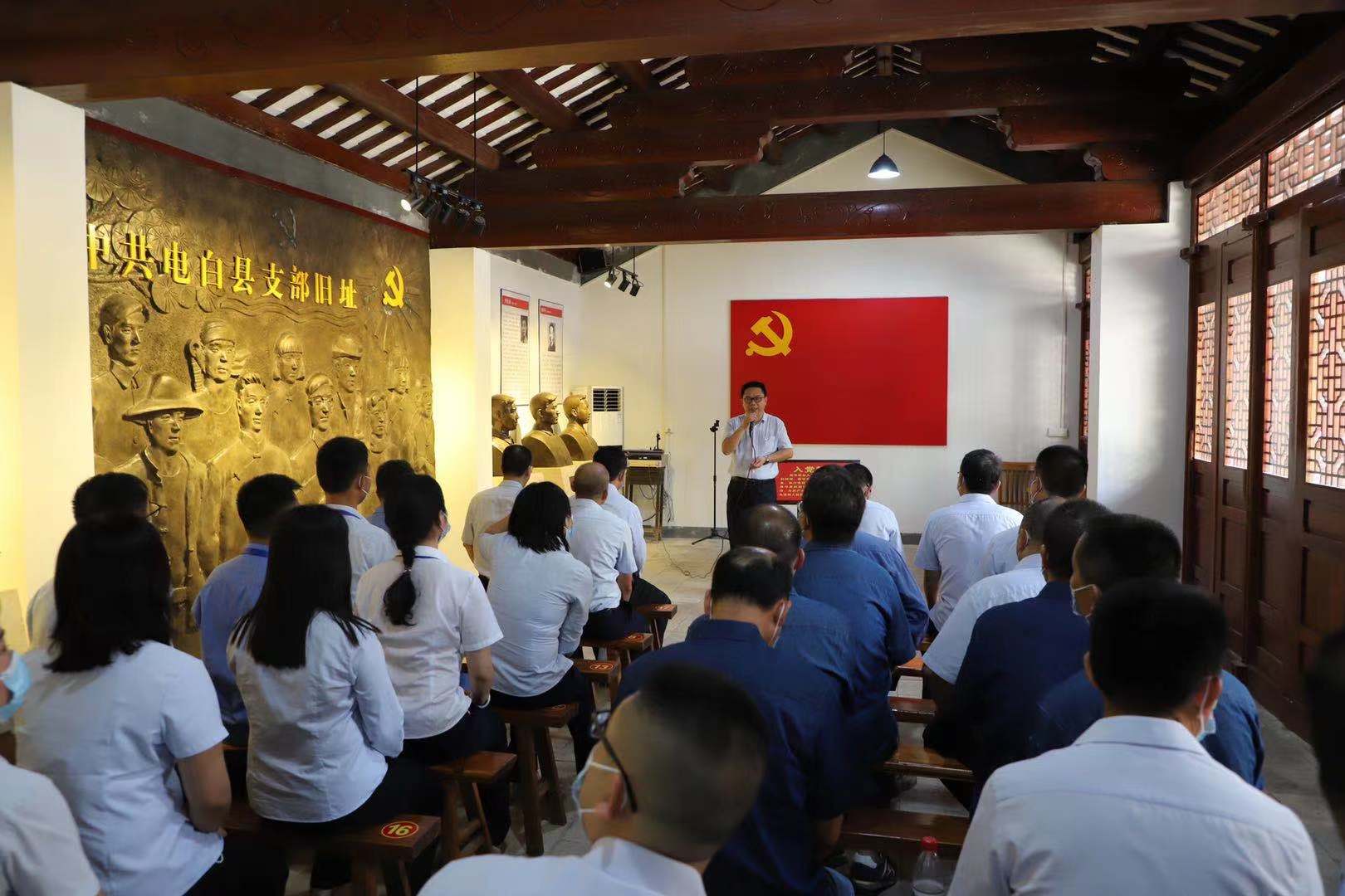 展廳內(nèi),一件件展品,一張張照片,一段段史實(shí)讓大家仿佛回到了那段激情燃燒的歲月。參觀活動(dòng)的人員不時(shí)停下腳步仔細(xì)觀看,認(rèn)真聽取講解員的講解,深刻認(rèn)識(shí)到紅色政權(quán)來之不易,新中國(guó)成立不容易,今天的幸福生活更是來之不易。隨后,在中共電白縣支部舊址大廳,集團(tuán)黨委書記、董事長(zhǎng)黃遠(yuǎn)維帶領(lǐng)集團(tuán)黨員干部職工面向鮮紅的中國(guó)共產(chǎn)黨黨旗,舉起右拳,重溫入黨誓詞,鏗鏘有力的宣誓響徹大廳。