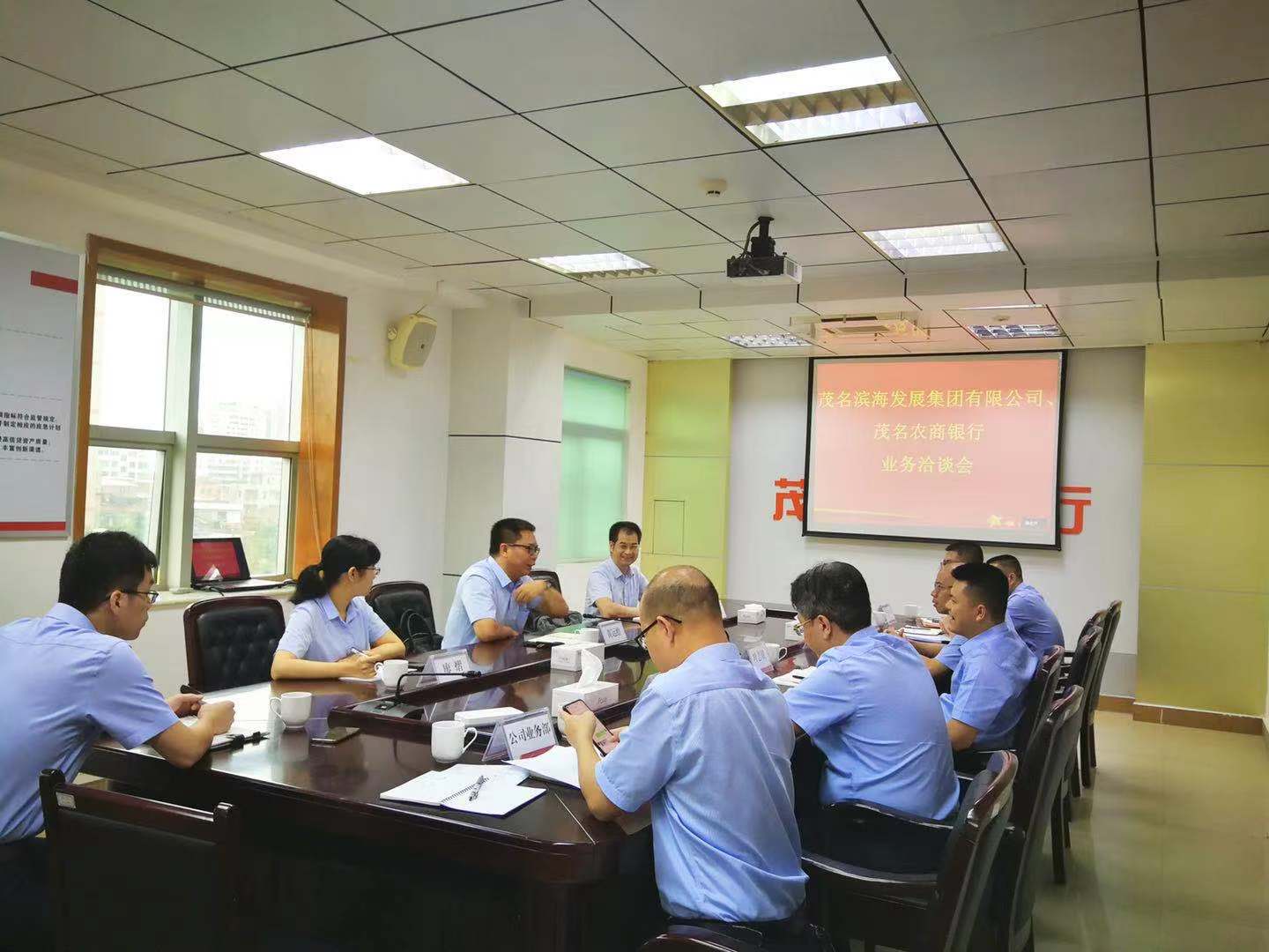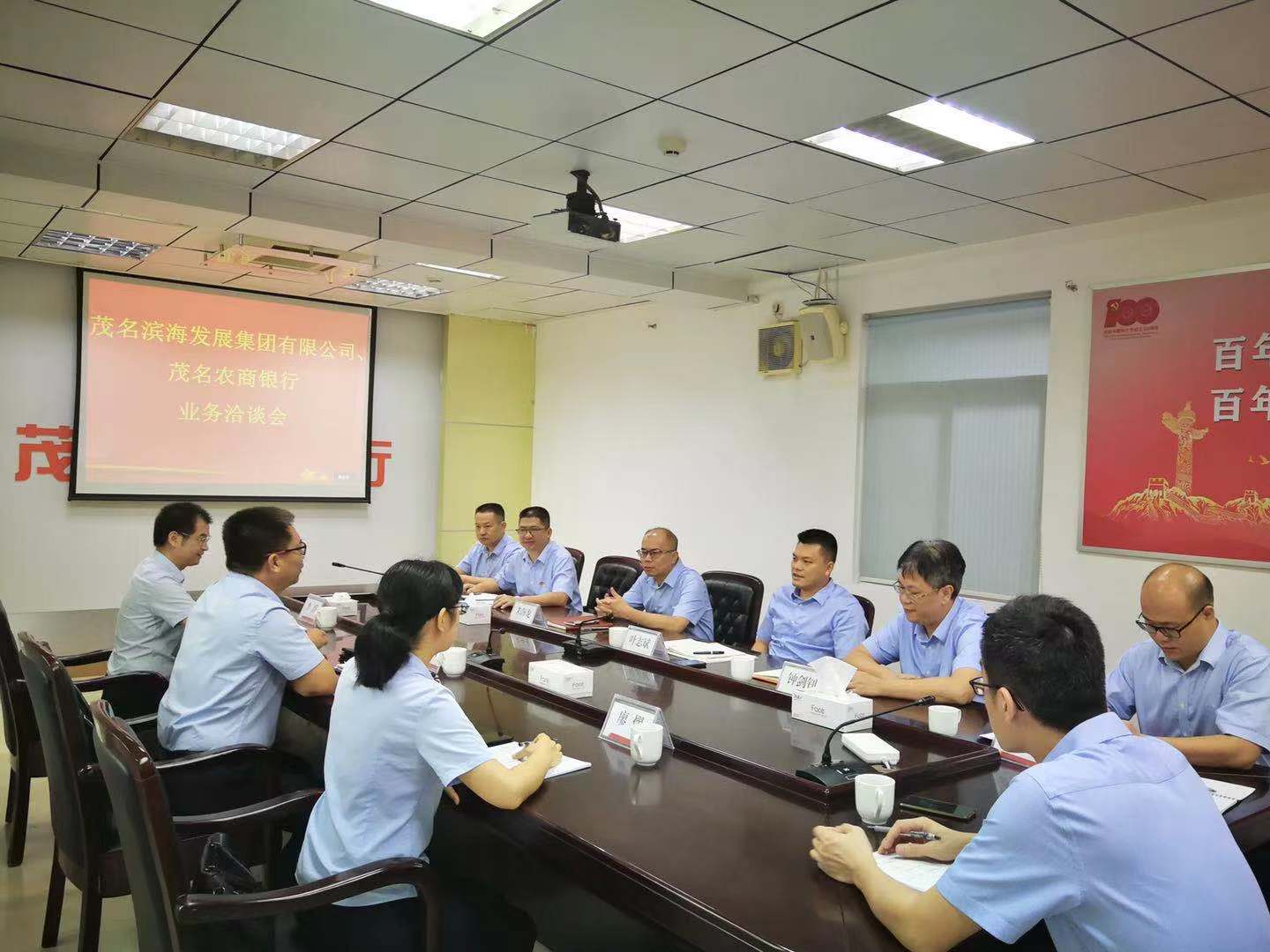 7月19日上午,茂名濱海發(fā)展集團(tuán)黨委書記、董事長(zhǎng)黃遠(yuǎn)維帶隊(duì)拜訪茂名農(nóng)商銀行,雙方就項(xiàng)目融資、產(chǎn)業(yè)合作等有關(guān)事宜進(jìn)行洽談,并達(dá)成合作意向。茂名農(nóng)商銀行行長(zhǎng)葉志斌,副行長(zhǎng)鐘劍釗、朱海龍;茂名濱海發(fā)展集團(tuán)黨委委員、副總裁李滔等參加座談會(huì)。