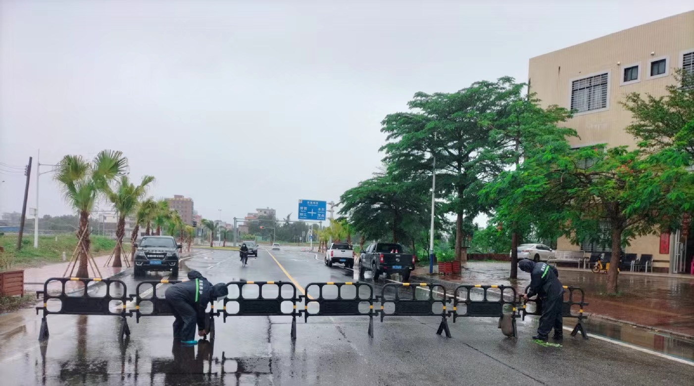 8月25日凌晨,在新區(qū)上級領導部門的指導部署下,道路養(yǎng)護中心各小組連夜分赴博賀灣大橋、清福港大橋、西葛驛站、濱海旅游公路沿途村莊路口等風險點進行封閉。同時,組織人員對各大排水口、下水道、放水涵閘進行提前清淤疏通,及時消除積水隱患。