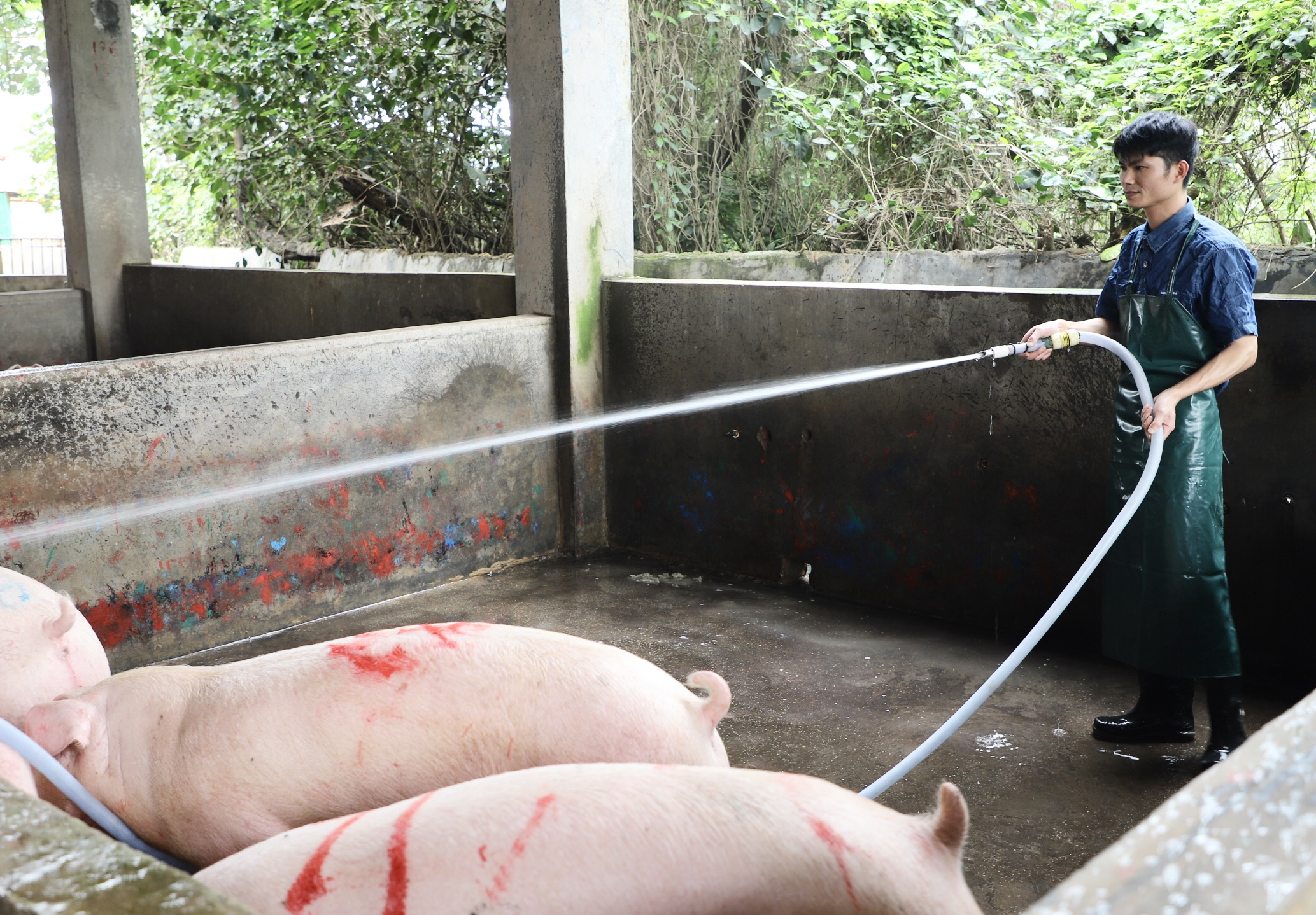 生產(chǎn)車間里面,采用的是現(xiàn)代機(jī)械化倒掛屠宰,一頭頭肥碩的生豬嚎叫著被趕進(jìn)屠宰間狹窄的運(yùn)送通道內(nèi),在運(yùn)送帶上,陳科錦熟練地用鎖鏈將生豬的腳鎖好,再將它們倒掛起來,運(yùn)送到放血師傅的位置,嫻熟地打燙鍋、刮毛、開腔、開邊......如此工序下來,剛屠宰下來的豬肉顯得更加白凈,肉質(zhì)更為鮮美。