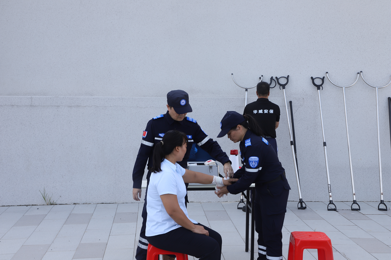安保人員隨后對模擬‘傷員’實施了規(guī)范的院前急救處理。